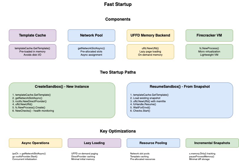 这些通用优化策略的综合应用,使Agent沙盒在保持安全隔离的同时,实现了极速启动性能,为各类AI系统提供了高效且安全的执行基础设施。如下图所示: