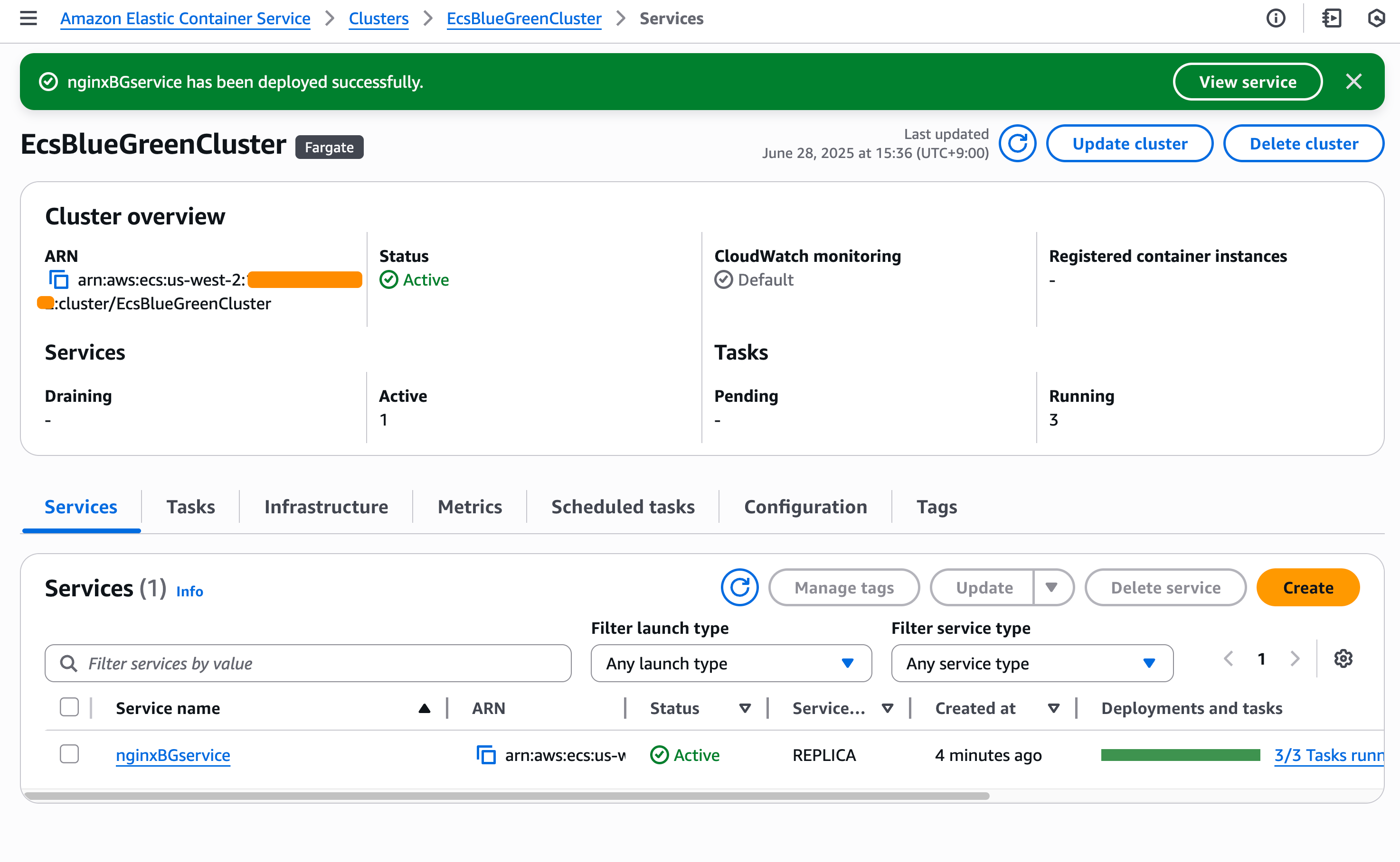 完成满意的配置后,我创建了服务,然后等待 ECS 配置我的新服务。
