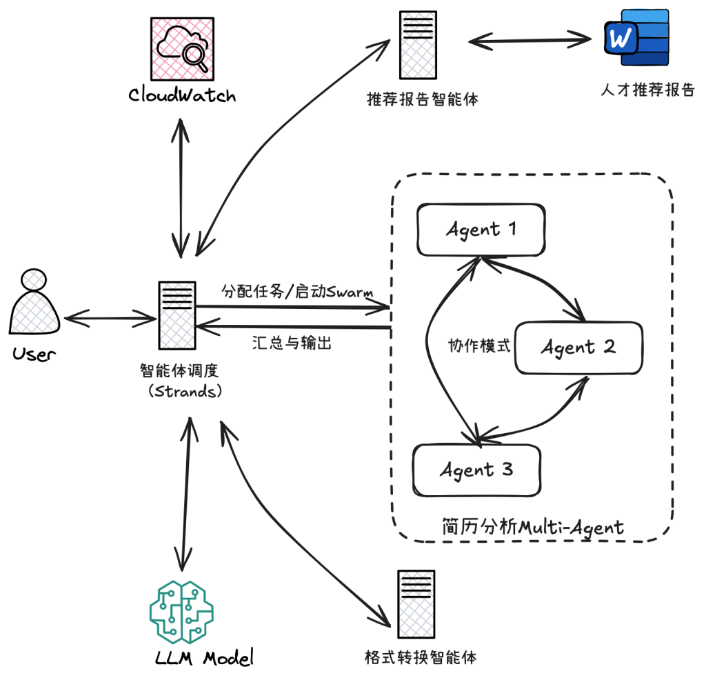 显著提升简历筛选效率:Strands Agents SDK 引入先进的 Swarm 架构,支持多智能体并发处理,能够同时对大量简历进行筛选与评估,大幅缩短整体招聘周期。