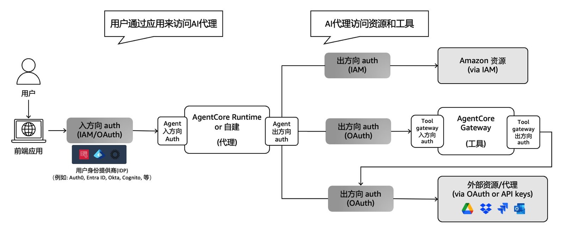 Amazon Bedrock AgentCore Identity 涉及的2种身份认证和授权
