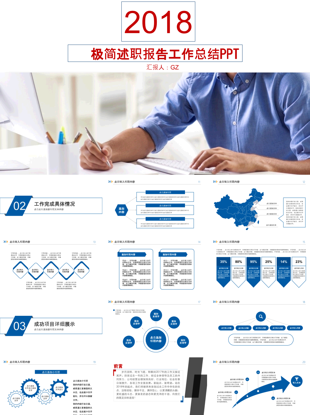 内含蓝色,灰色,红色多种配色,精美简约风格设计,动态播放效果,精美实用。