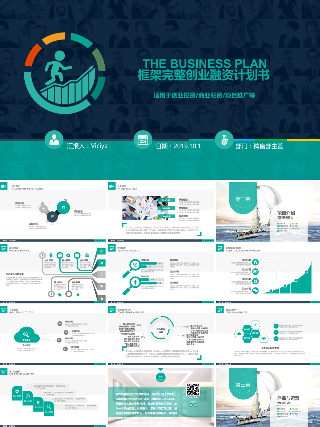 这是一份设计精美的、包含青色、橙色、蓝色等多种配色的创业融资计划PPT模板,适用于商业汇报。模板共27页,16:9比例,由封面、目录、内容、转场页和结尾组成,支持动态播放,且所有内容均可编辑。下载后使用Office或WPS即可编辑。