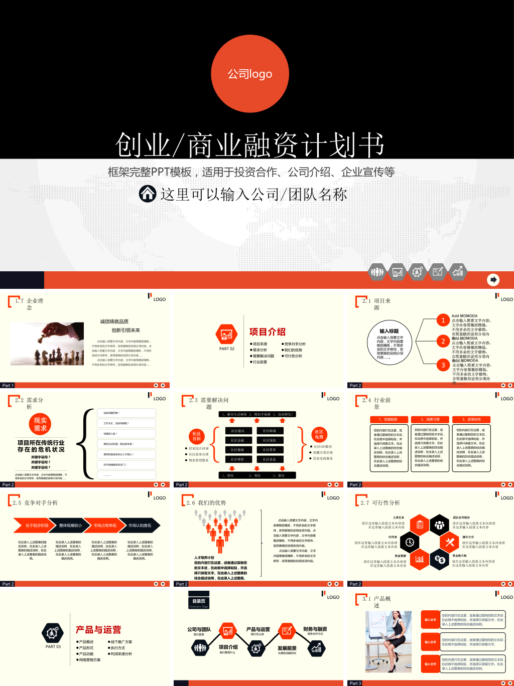 设计使用黑色,灰色,红色多种配色,精美商务风风格设计,动态播放效果,精美实用。