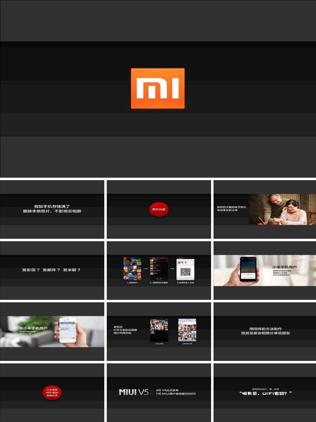 一份高质量的PPT模板,可以让你在日常的工作中展示自我、脱颖而出、去赢得更多机会,今天小编分享一份精美的MIUI发布会PPT模板