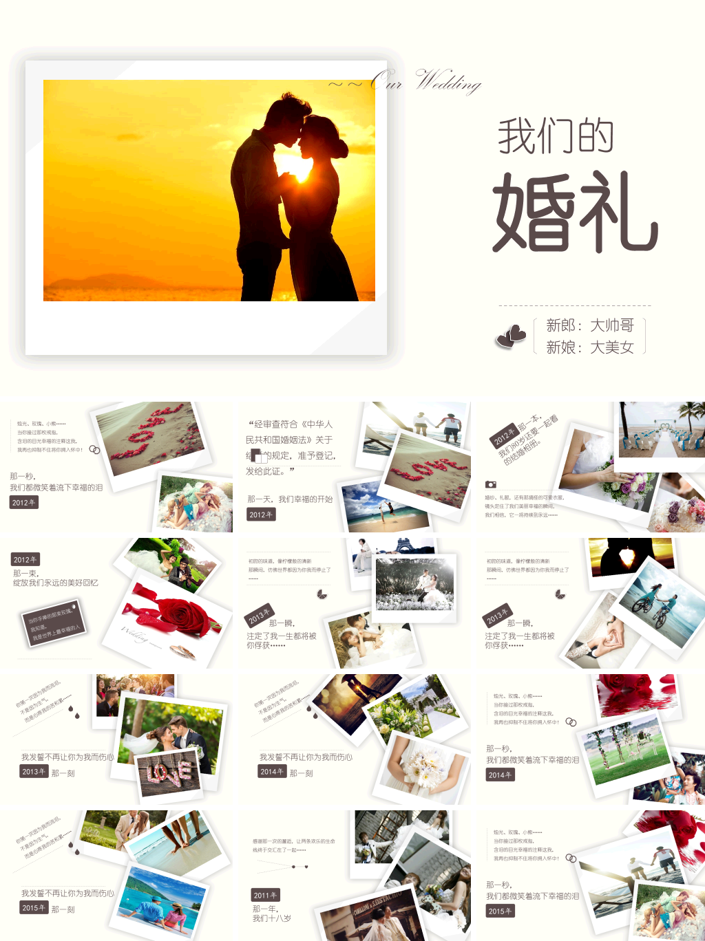 一份高质量的PPT模板,可以让你在日常的工作中展示自我、脱颖而出、去赢得更多机会,今天小编分享一份精美的温馨浪漫婚礼PPT模板