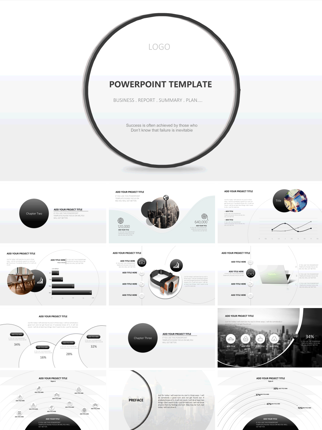 设计使用灰色多种配色,精美简约,商务风风格设计,动态播放效果,精美实用。