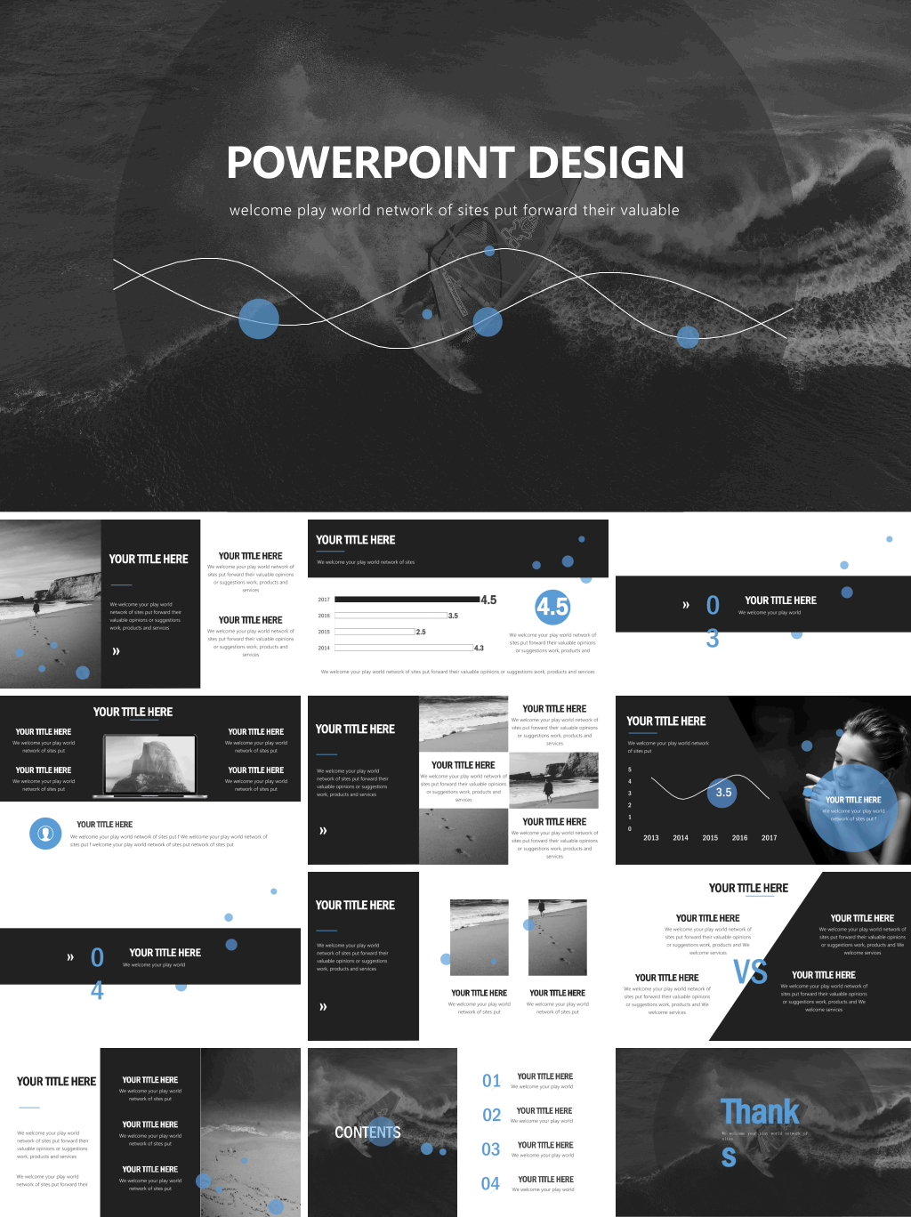 设计使用灰色多种配色,精美简约风格设计,动态播放效果,精美实用。