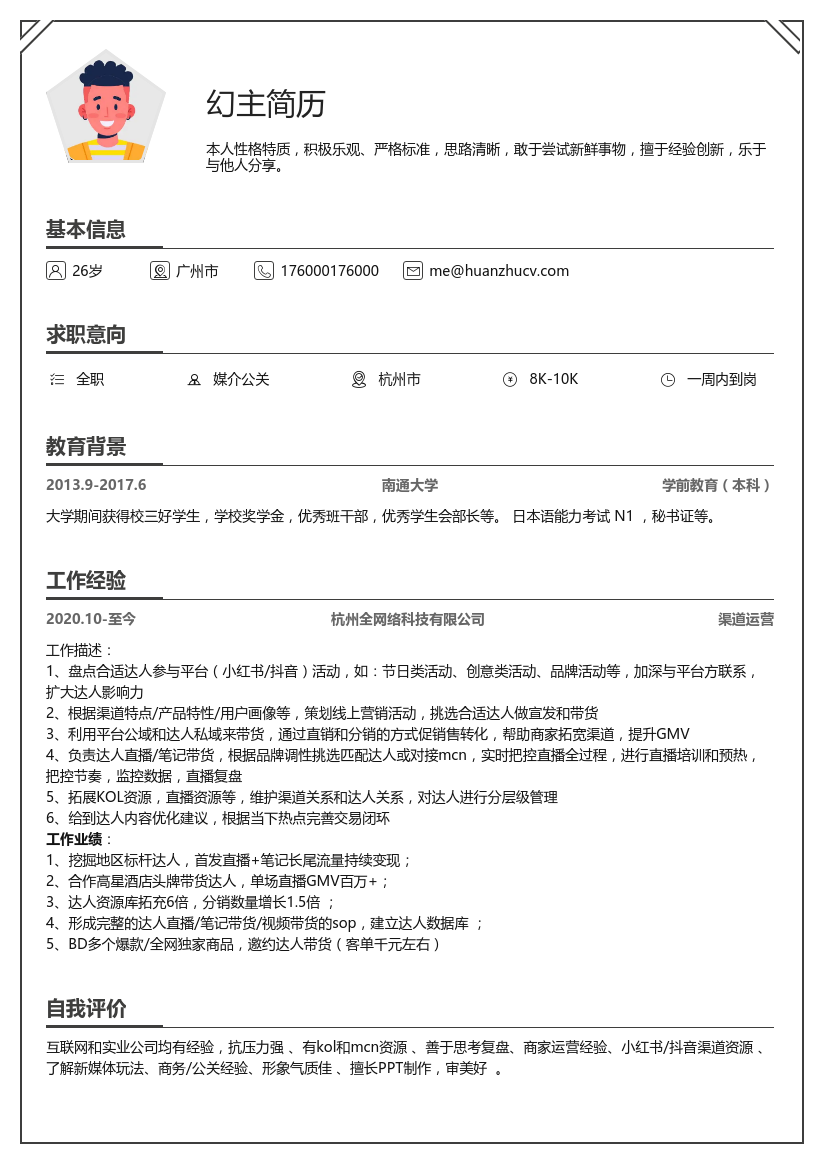 在线编辑下载地址:媒介公关求职简历模板-幻主简历