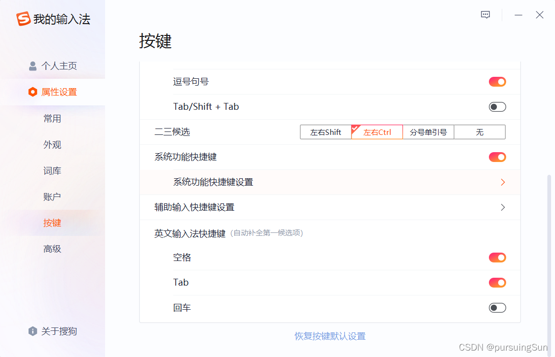 哎,新版本的输入法设置里面找半天。。