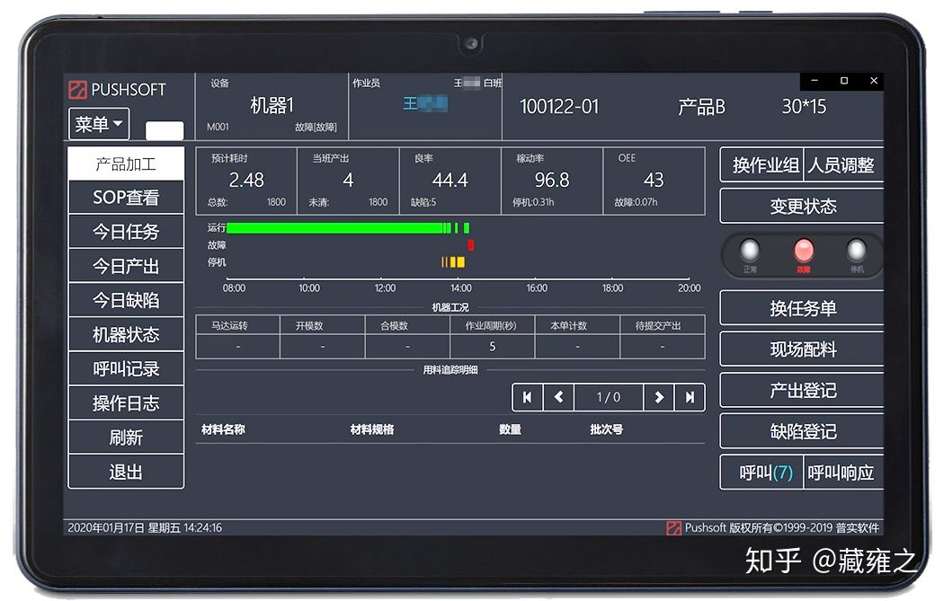 工人针对生产设备进行实时管理,系统自动记录设备的工况和有效工时,结合订单完工和工人效率,统计分析设备的OEE等。