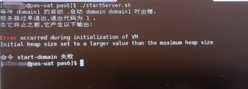 PAS6.5_1733调整JVM参数后重启PAS报错:Error occurred during initialization of VM Initial heap size set to a larger value than the maximum heap size