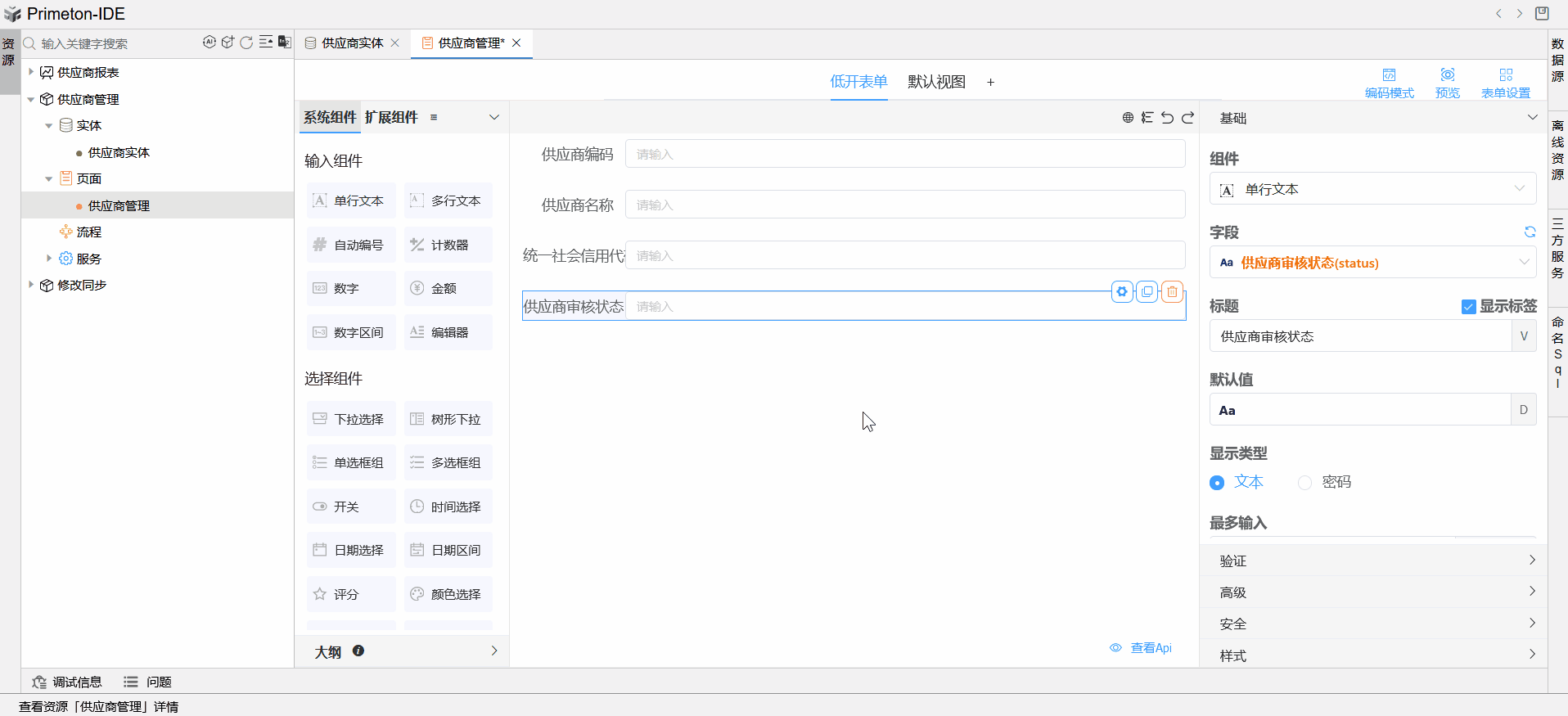 在表单中设置供应商状态默认为无效,并修改表单新增时,供应商状态字段为禁用状态。