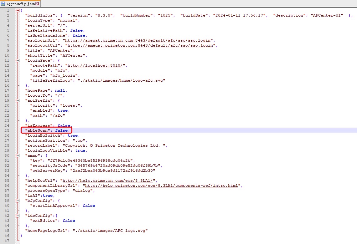 将EOS83LA1\web\afcenter\config\app-config.json中"ableScan"的值由true改为false,重启nginx、刷新浏览器。