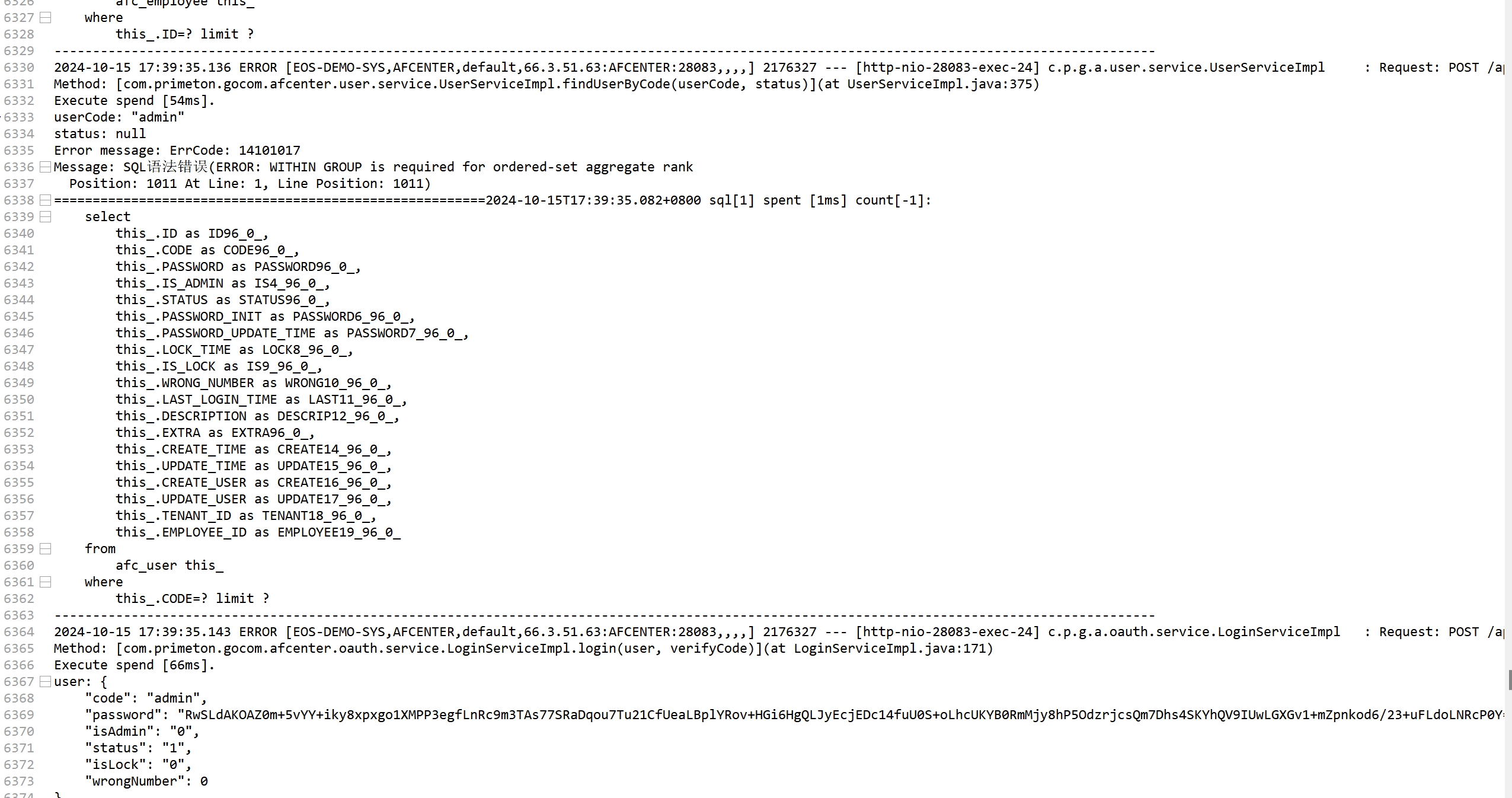 该问题是由于项目中在afc_employee表中添加了一个名为rank的字段,使用数据库为金仓数据库兼容pg模式,pg数据库中有个关键字为rank,两者冲突导致;
