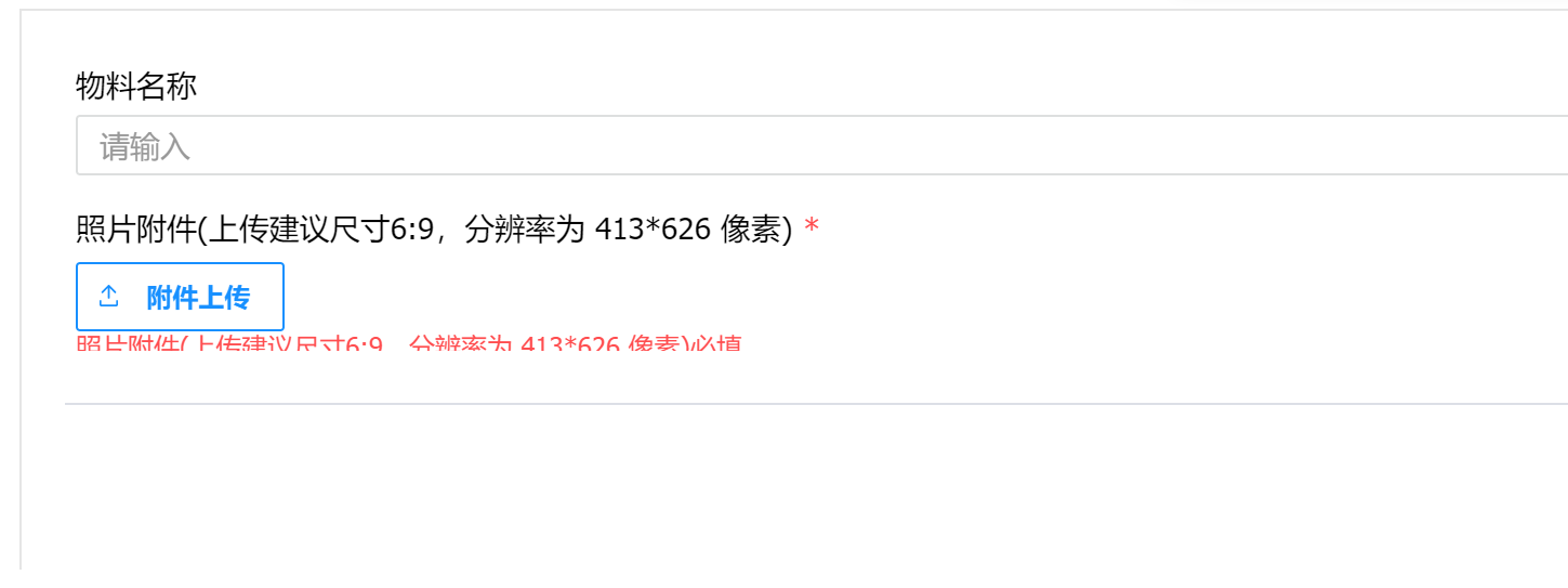 附件上传组件设置必填后,必填提示信息显示不完整: