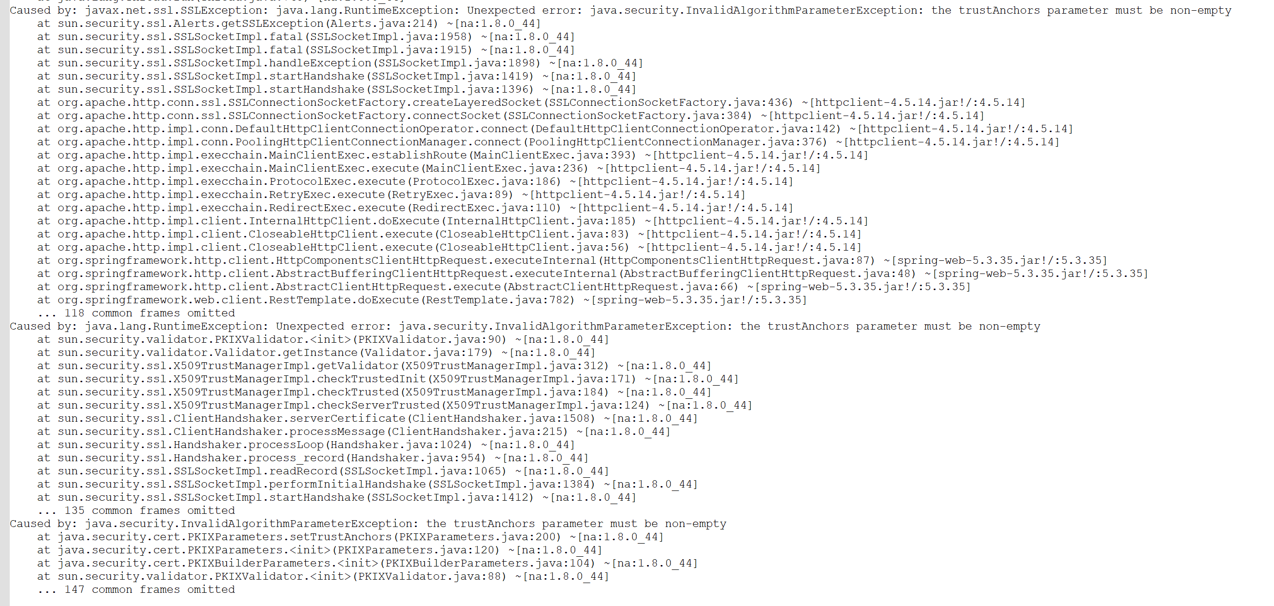 Governor配置日志中心地址是https,测试地址连通性未通过:Caused by: java.security.InvalidAlgorithmParameterException: the trustAnchors parameter must be non-empty