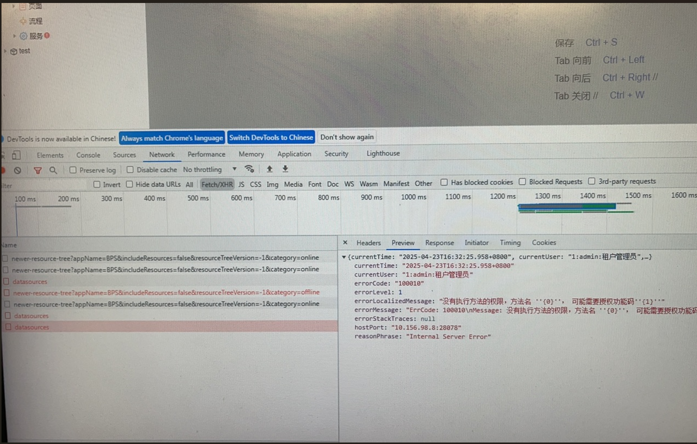 开发中心进去报错:没有执行方法的权限,方法名{0}可能需要授权功能码"{1}