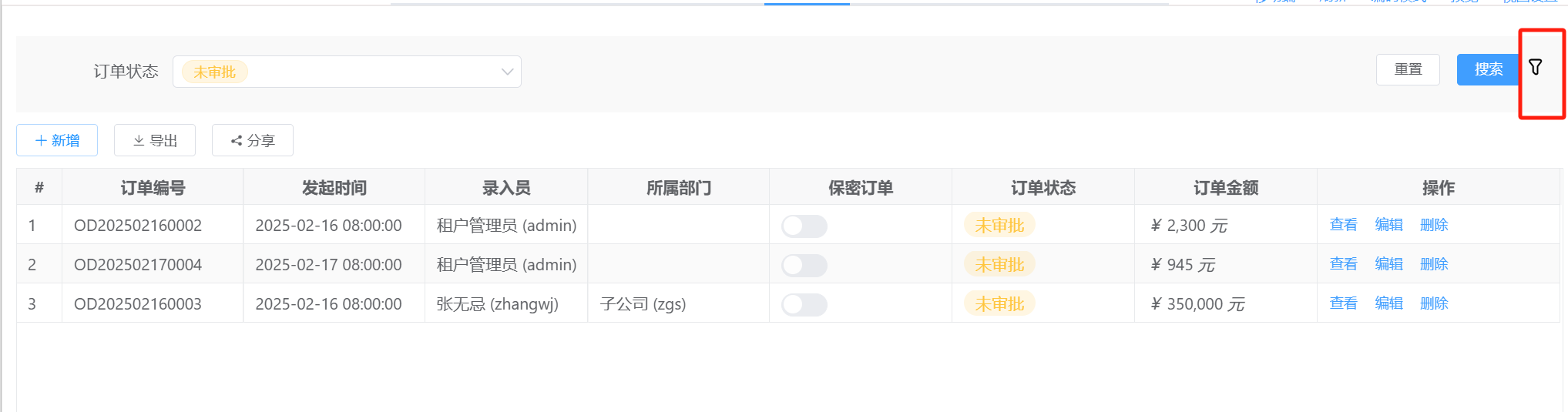 3、点击保存后,刷新之前的列表页面,即可隐藏掉漏斗图标