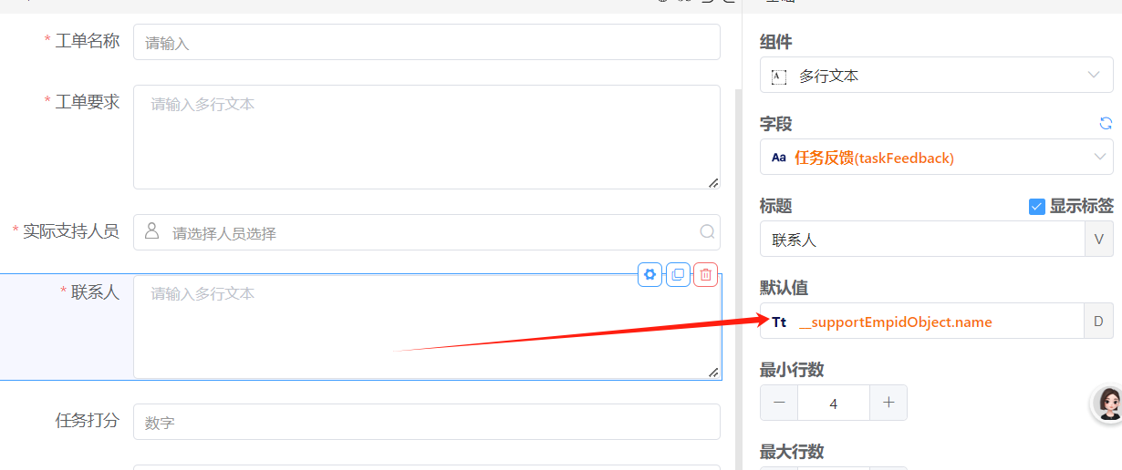 832低开中人员选择组件勾选允许多选,想给其它字段设置默认值为选择的name,单条可以,多条就不可以,怎么解决?