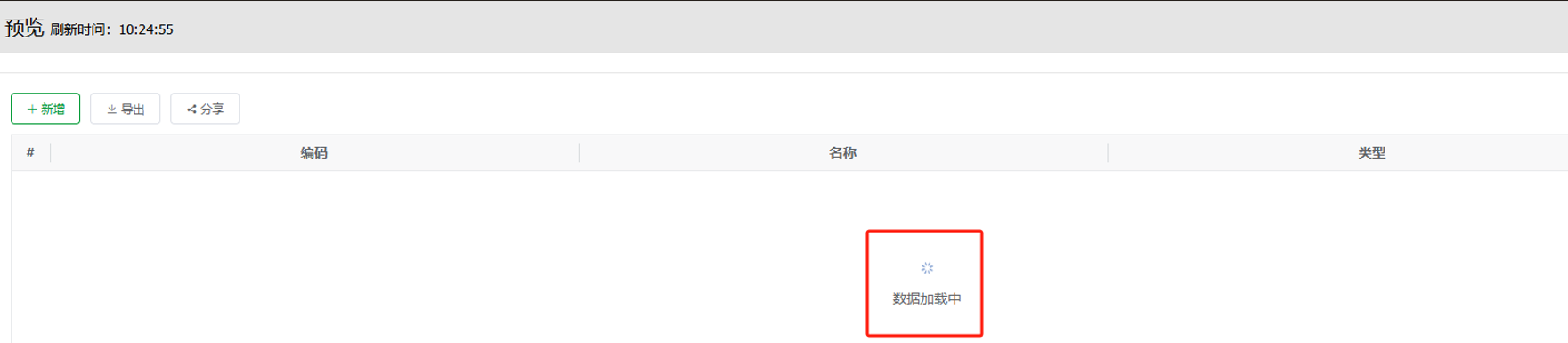 在默认视图,视图加载前事件中调用自定义查询接口,接口返回200了,但是界面一直在转圈,显示数据加载中: