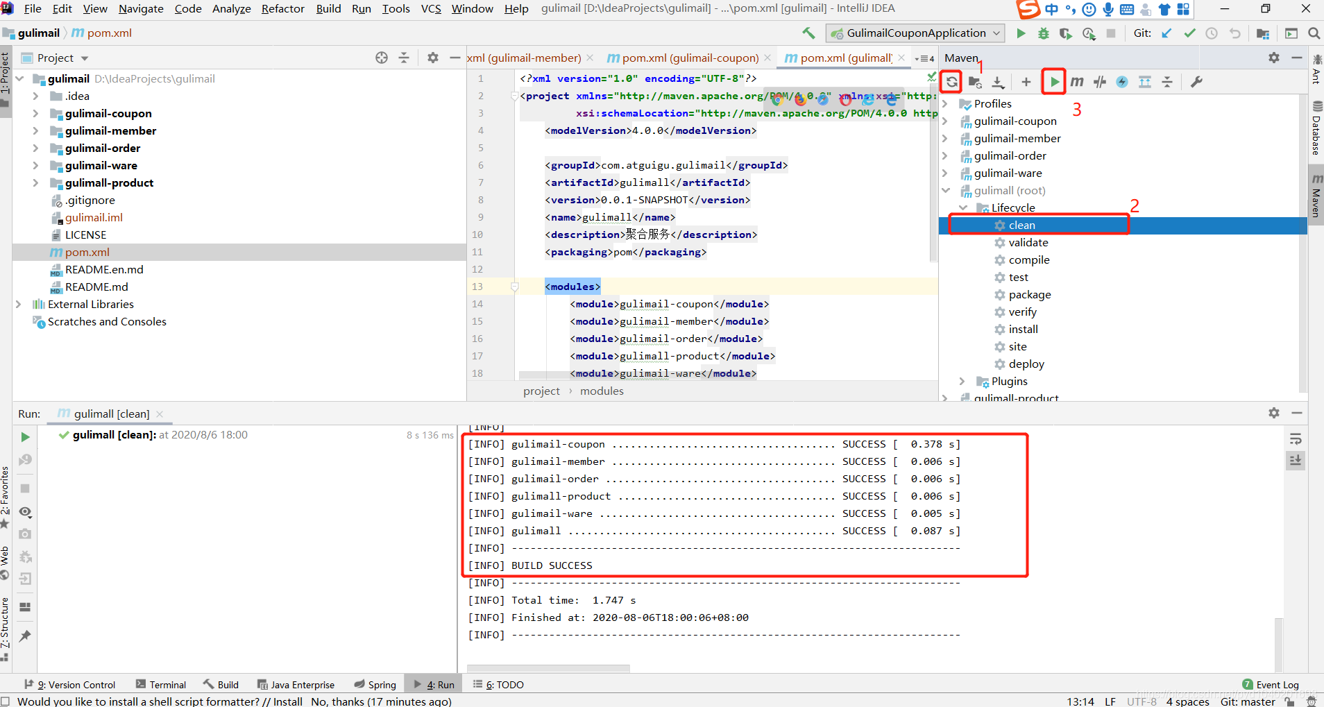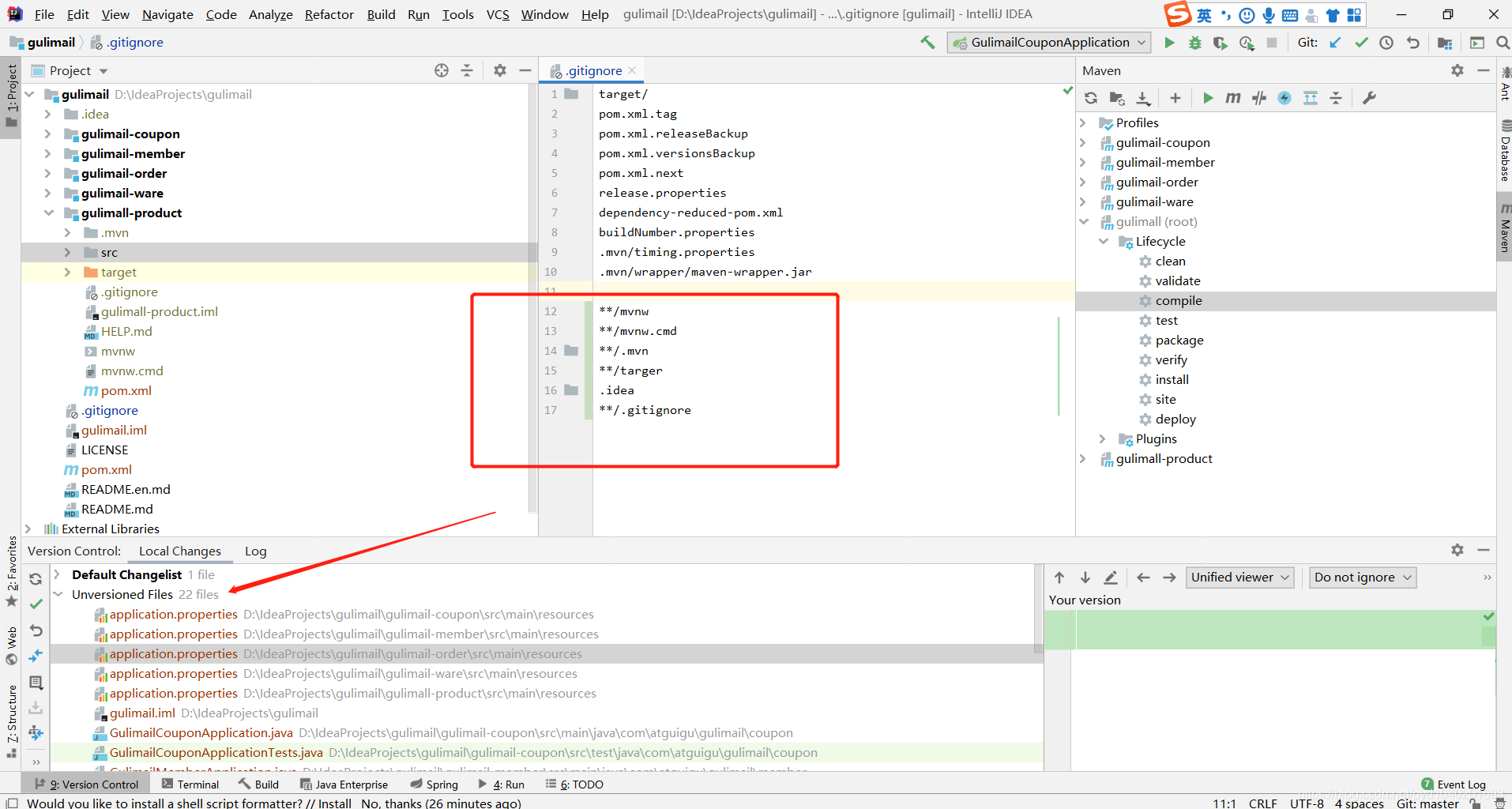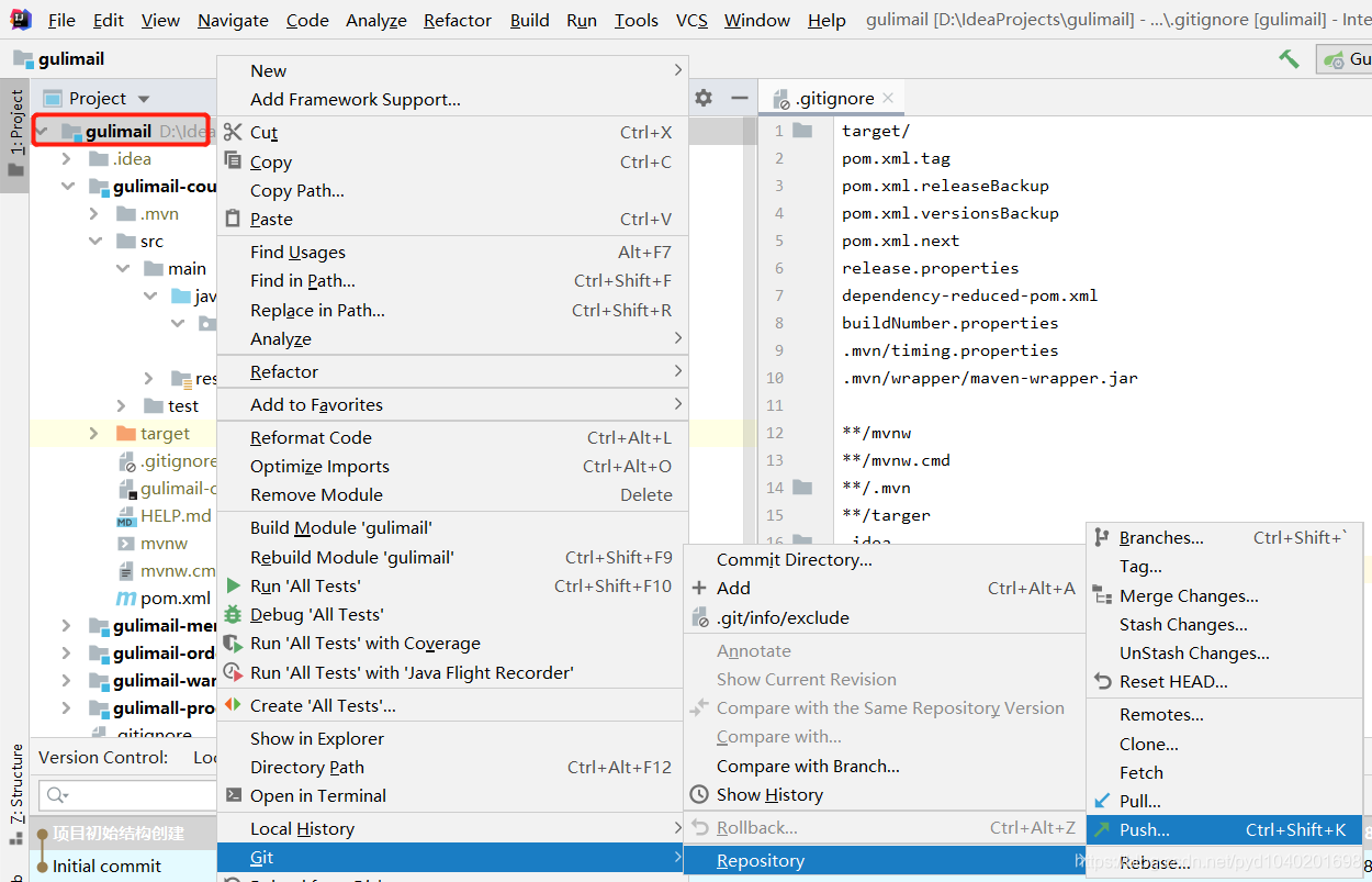 本文详细介绍谷粒商城服务搭建过程,包括项目clone至IDEA、创建商品、优惠券、会员、订单及仓储等服务,以及如何配置Maven、设置忽略文件、纳入版本控制并提交至码云。