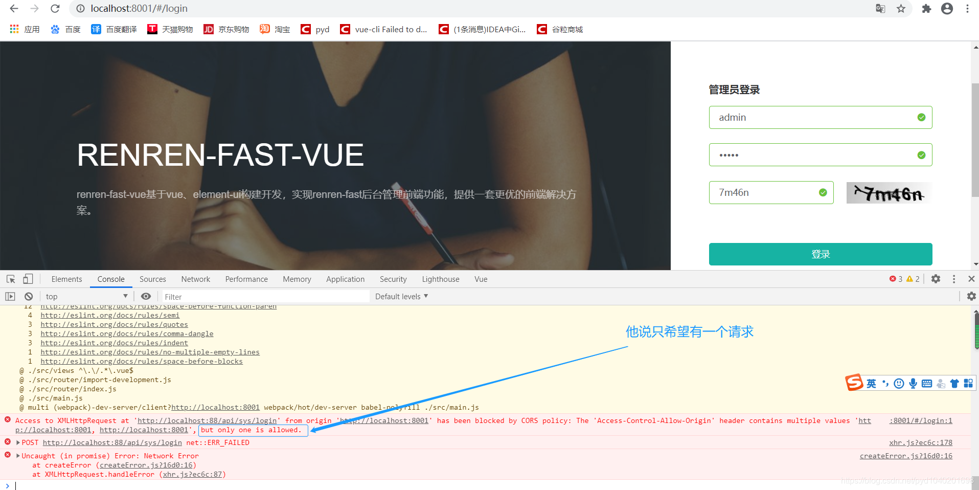 这是网关配置了跨域,脚手架renren-fast也配置了跨域,将代码注释掉