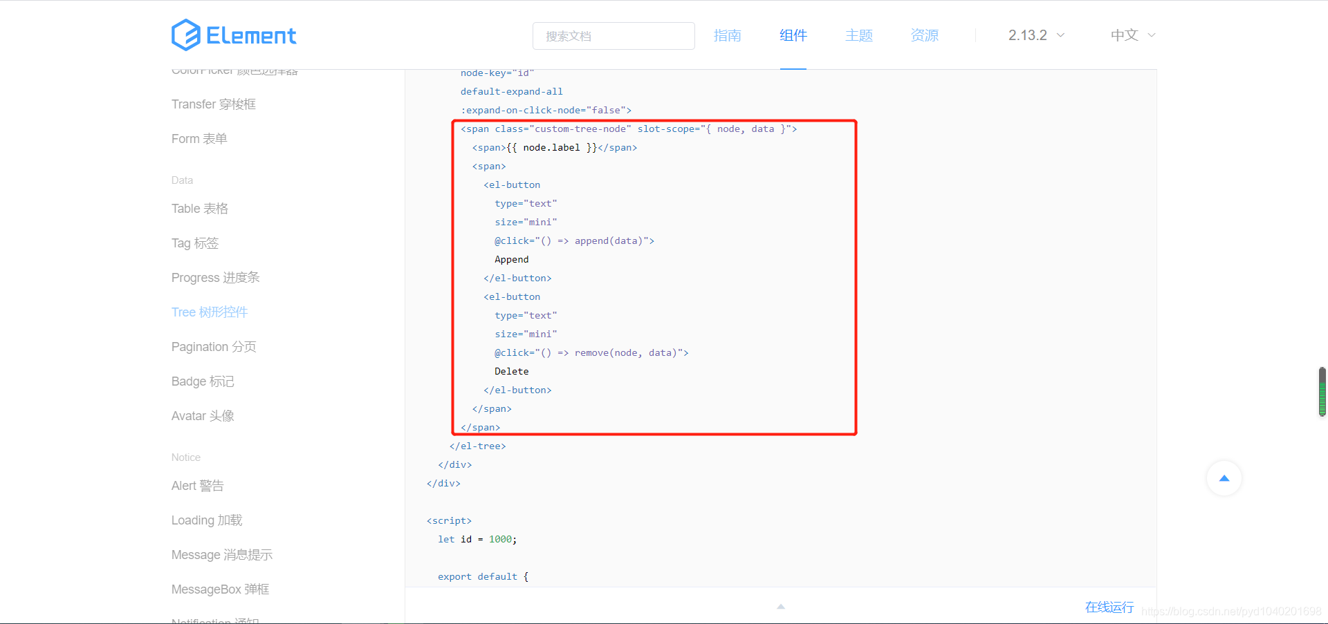 <el-button type="text" size="mini" @click="() => append(data)">Append</el-button>