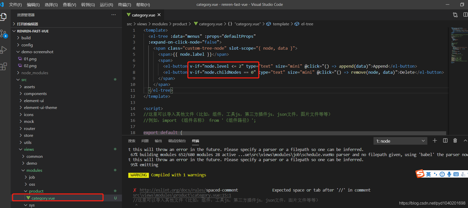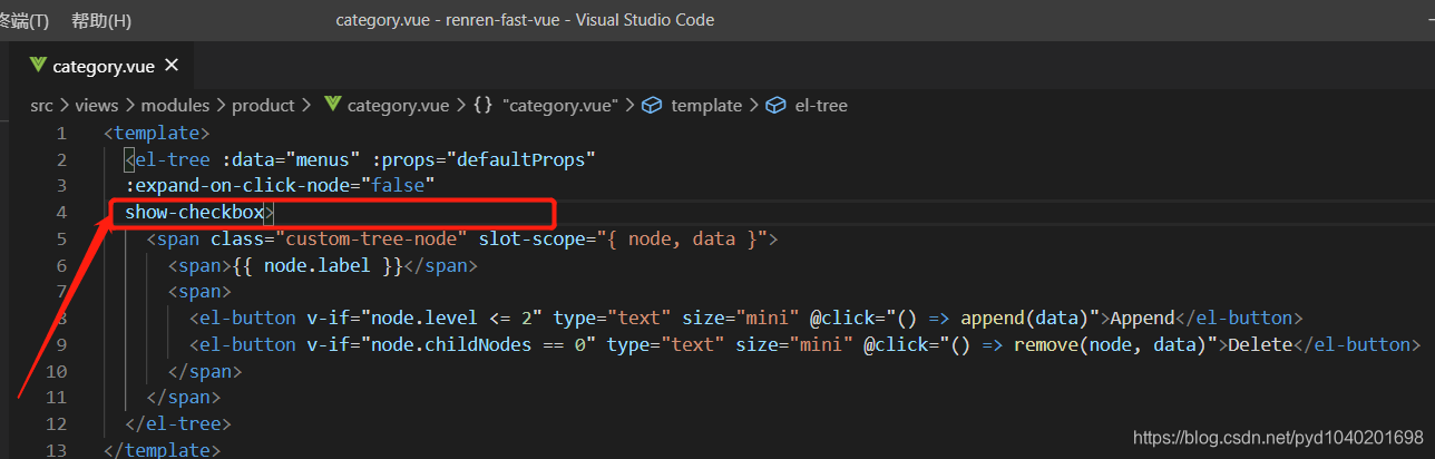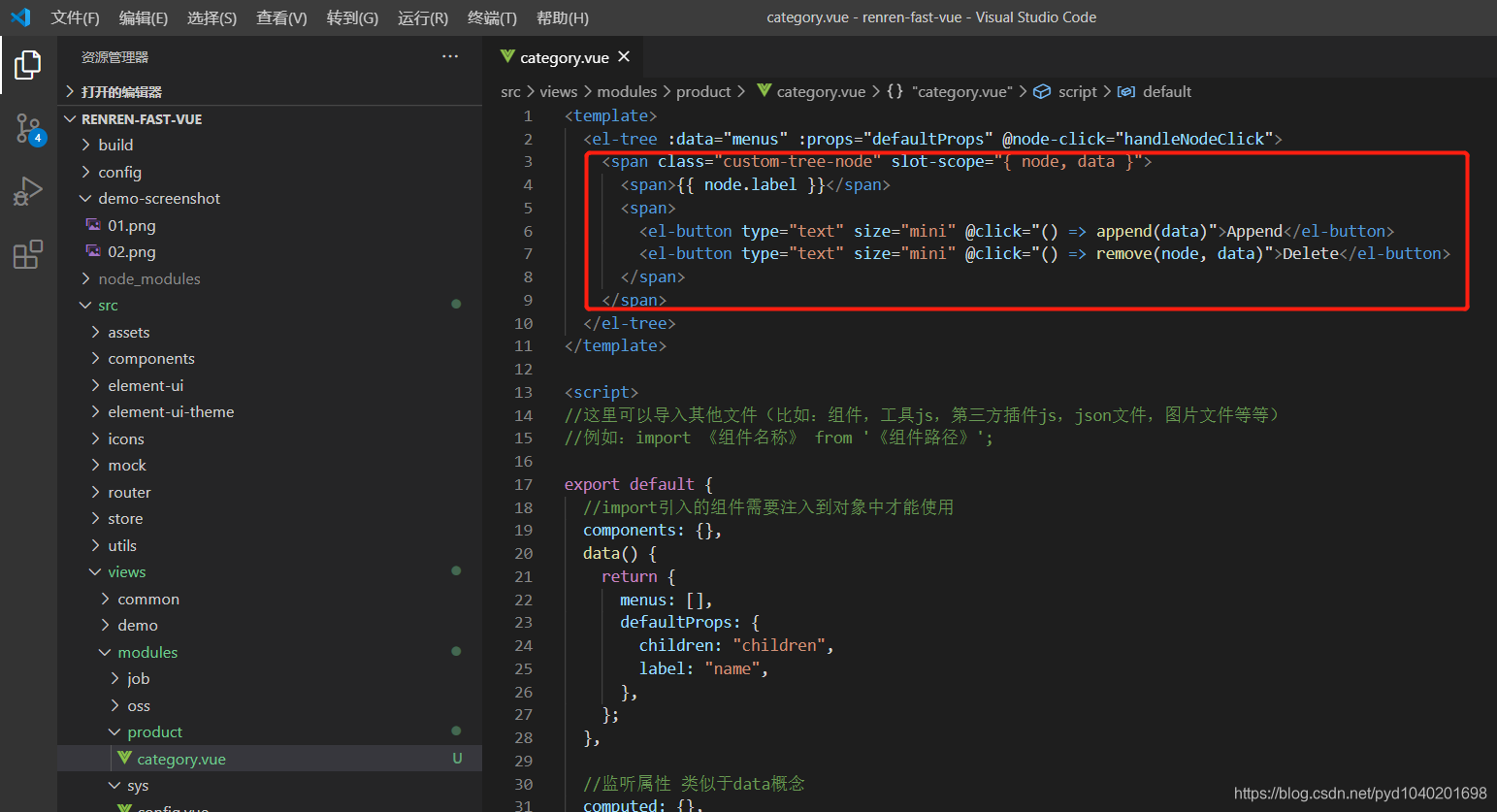 本文介绍如何在Vue中使用el-tree组件实现自定义节点操作,如Append和Delete,并调整节点展开方式及按钮显示条件。通过设置expand-on-click-node属性,确保仅点击三角形图标时才展开节点。同时,根据节点层级控制Append和Delete按钮的可见性。