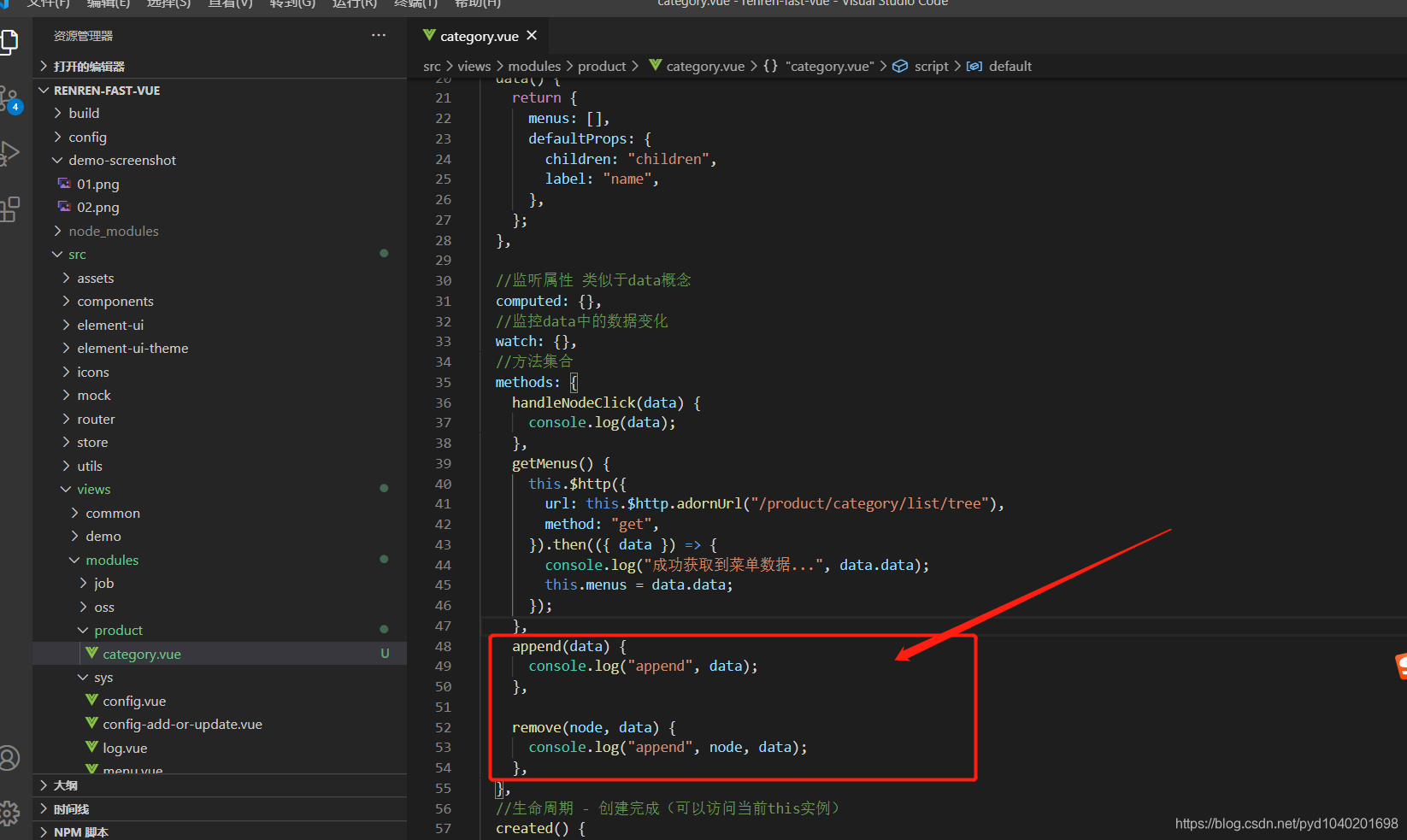 现在有个问题:点击 Append 或者 Delete 的时候,节点会展开或者收缩