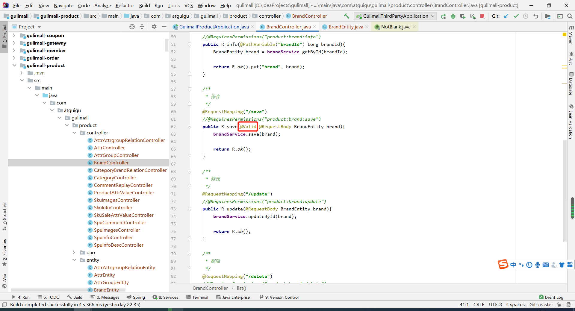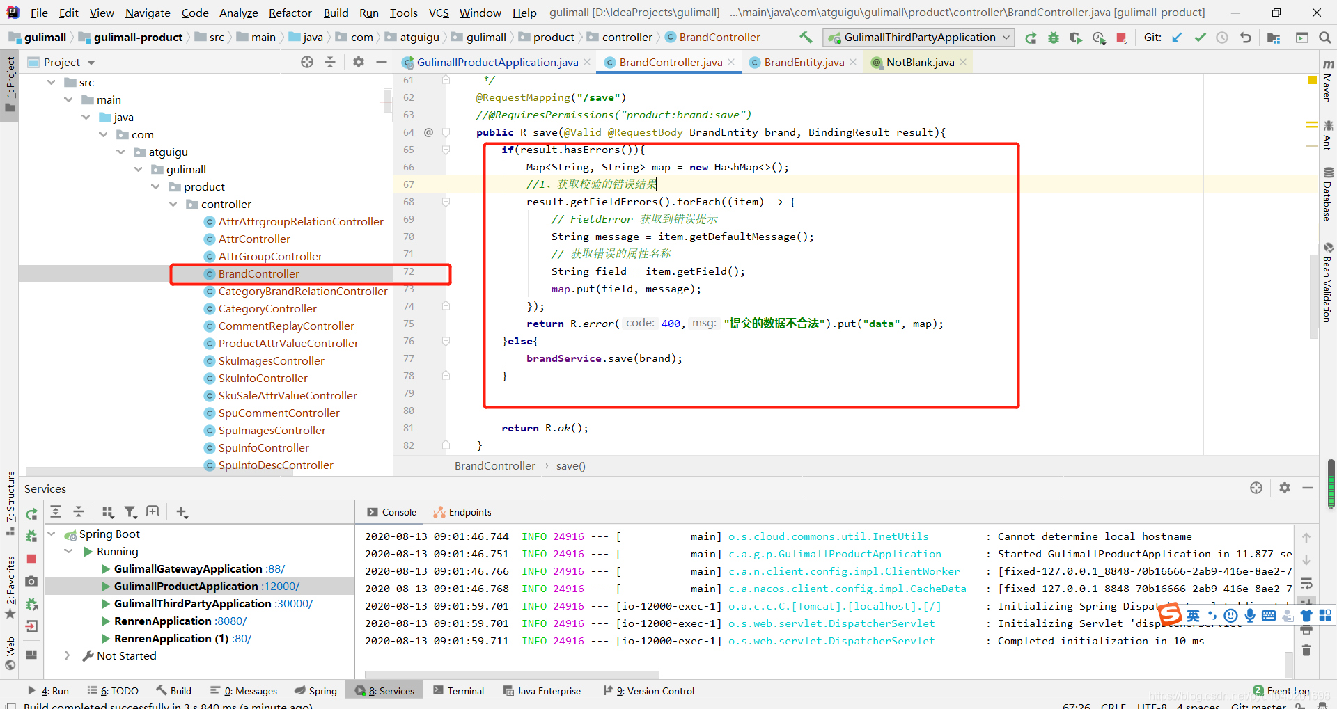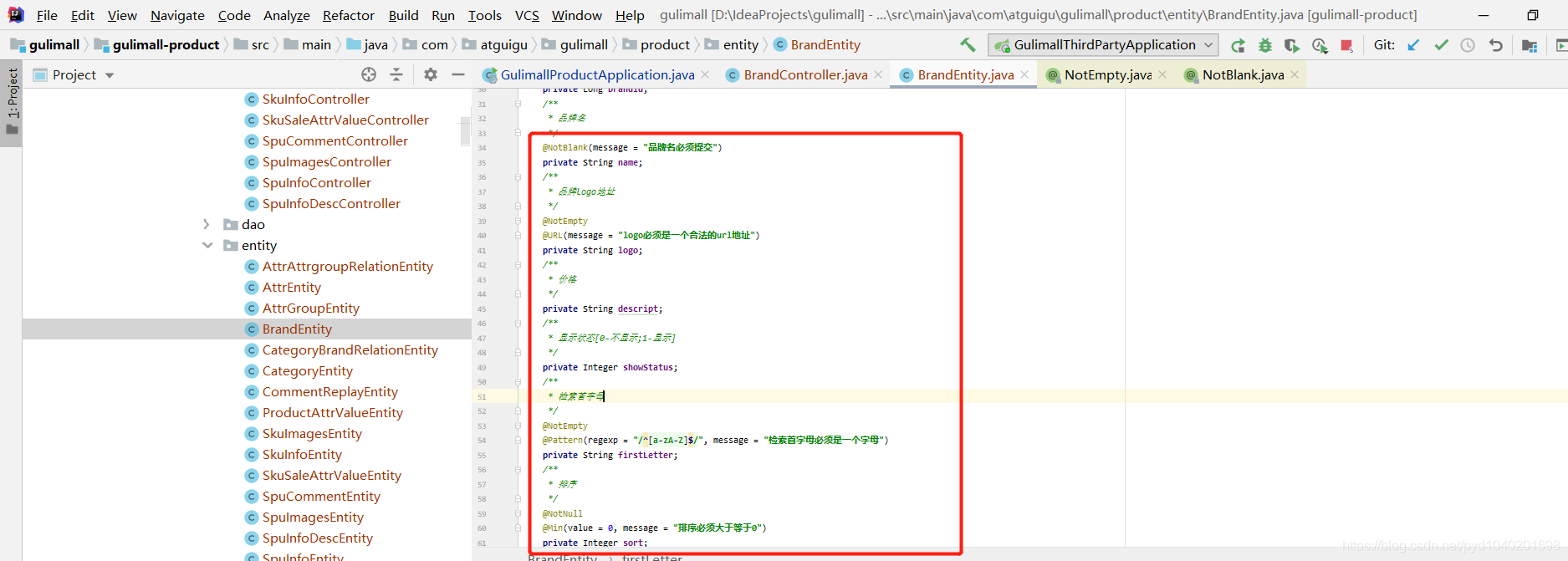本文探讨了商品服务重启流程中数据验证的重要性,通过Spring框架的校验注解实现对品牌信息的合法性检查,包括品牌名、logo URL、描述、显示状态等字段的有效性验证。