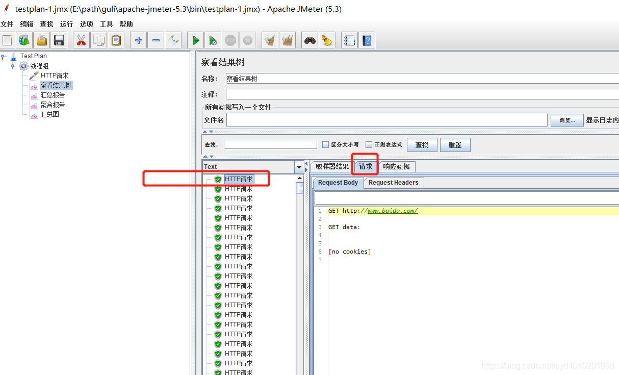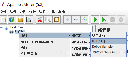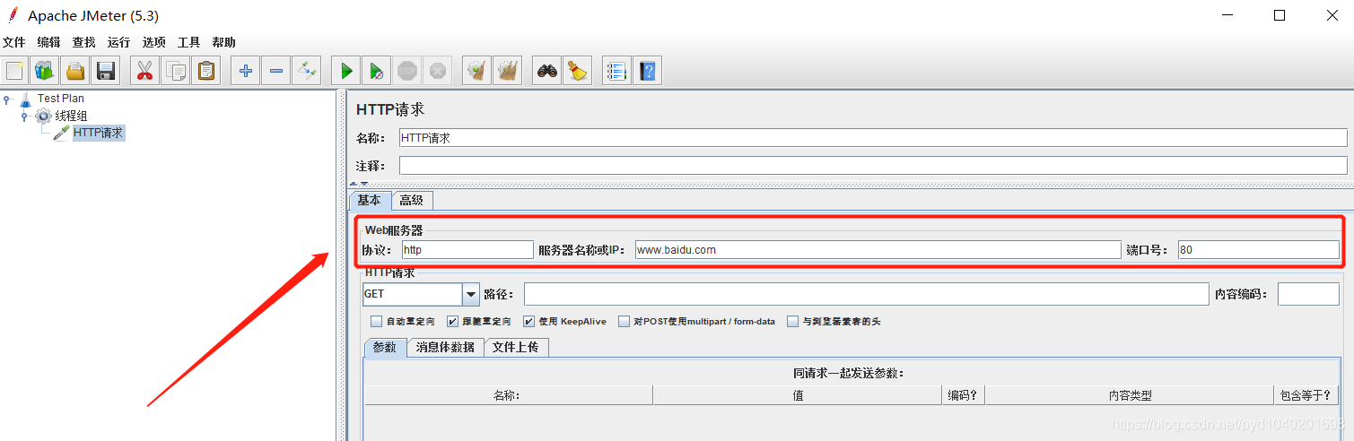 添加 HTTP 请求,相当于我们创建了 压力测试的目标