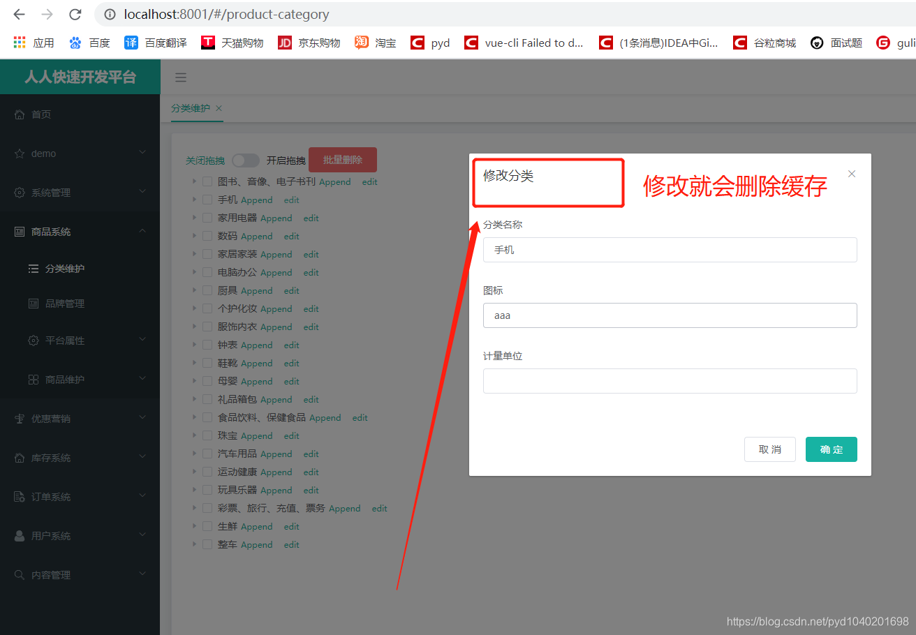 现在有一种需求就是,改了菜单,要将这两个缓存都删除