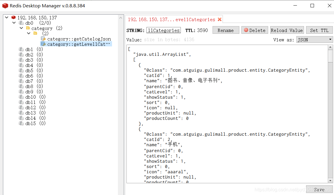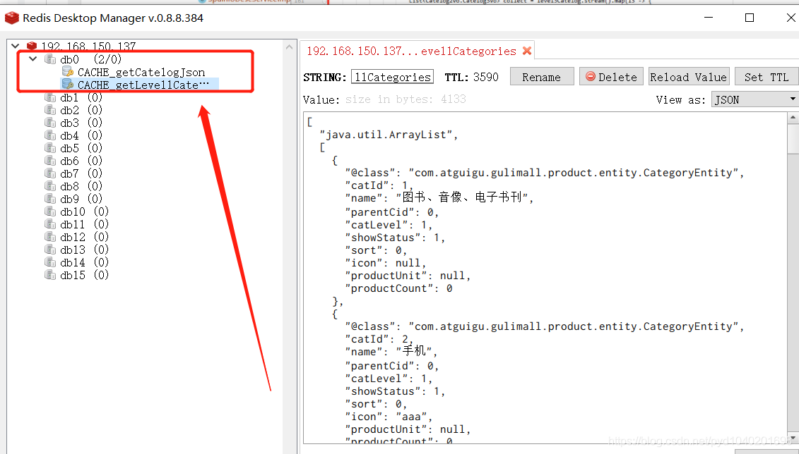在 RedisDeskTopManager客户端查看缓存,可以看到缓存删除了