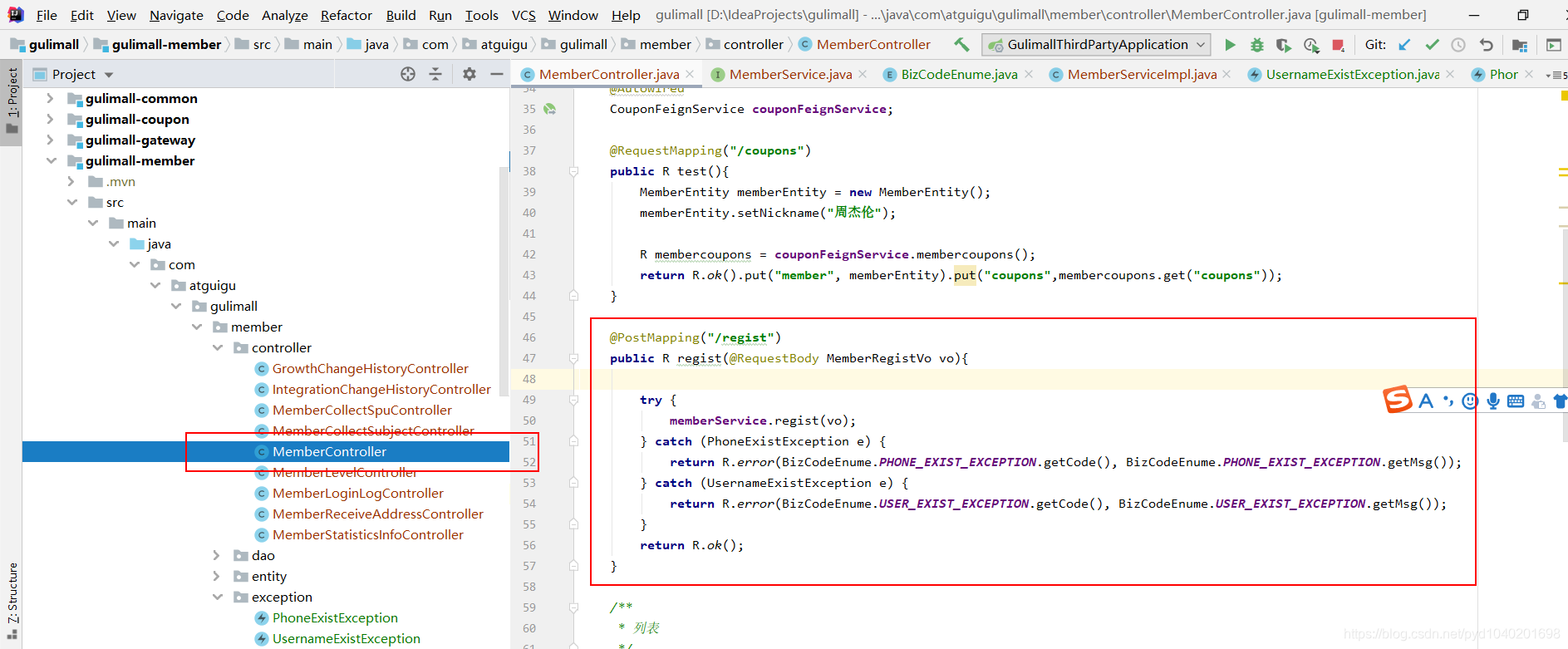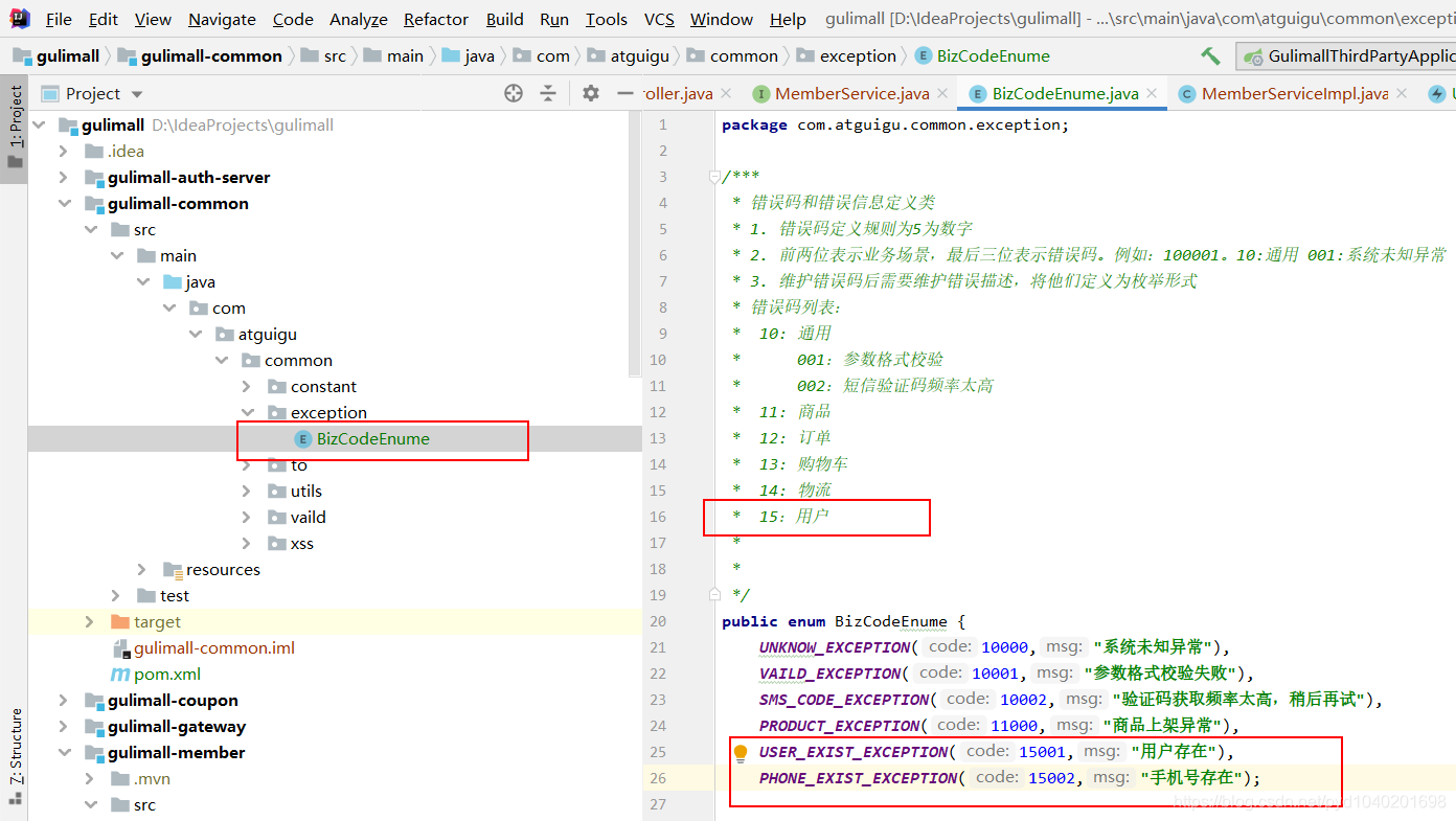 return R.error(BizCodeEnume.USER_EXIST_EXCEPTION.getCode(), BizCodeEnume.USER_EXIST_EXCEPTION.getMsg());