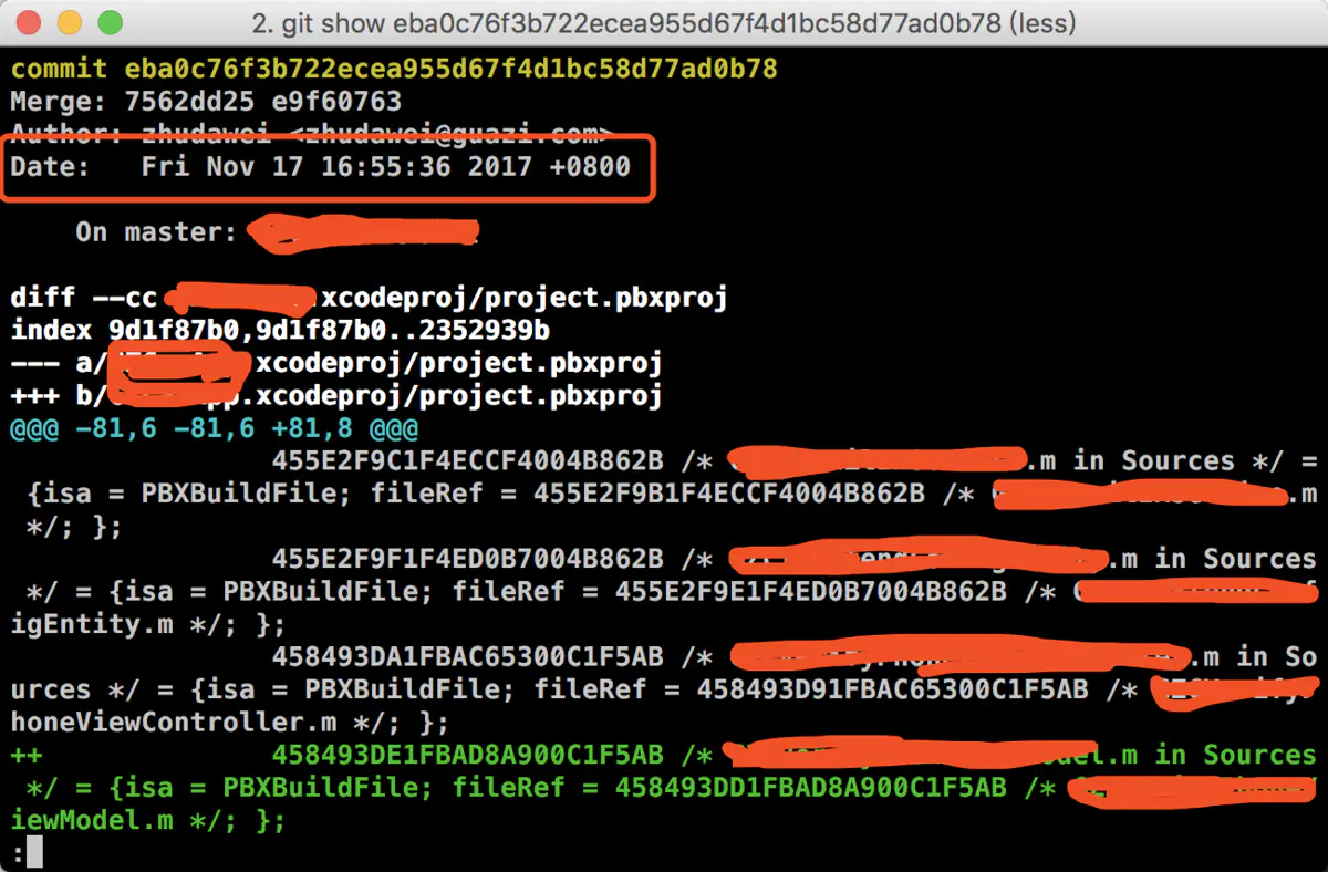 git show后面跟上要show的id,就可以展示这个id所对应的blob,tree,tag和commit。比如:git show eba0c76f3b722ecea955d67f4d1bc58d77ad0b78。比较诡异的是,这些id所对应的记录并不是有序的,如果想要找到之前误删的内容,需要我们一条条的去show出这些内容,然后判断是否是要找回的。万幸的是有两点如果能善加利用的话,会起到事半功倍的效果。一是我们只需要关心commit类型的内容,这些才是我们保存过或者提交过的内容;二是show出来的内容是有日期的,我们只要能大概记住误删内容的保存或提交日期,那么找起来自然轻松很多。