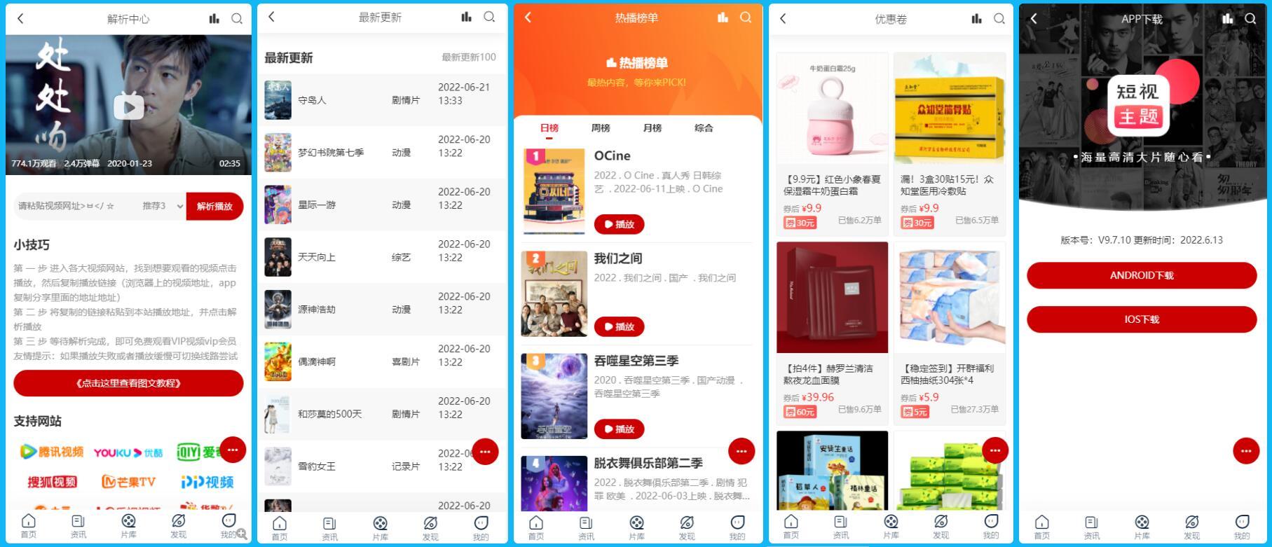 短视主题是使用苹果cms10开发的一套适用于苹果cms10最新版本的模板主题,支持苹果cms所有页面并且携带电视,直播,听歌,优惠卷等多功能化主题,整体参考优酷wap版及芒果tv手机版风格设计而成,是第一套以黑色为主题的苹果cms模板,整体大气时尚并且支持DIY可视化布局让不懂代码的小白也可随意修改模板杜绝千篇一律让你随意发挥。