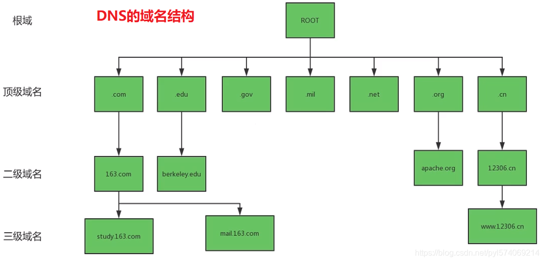 2、DNS利用类似倒状树的目录结构将主机名的管理分配在不同层级的DNS服务器当中,经过分层管理,