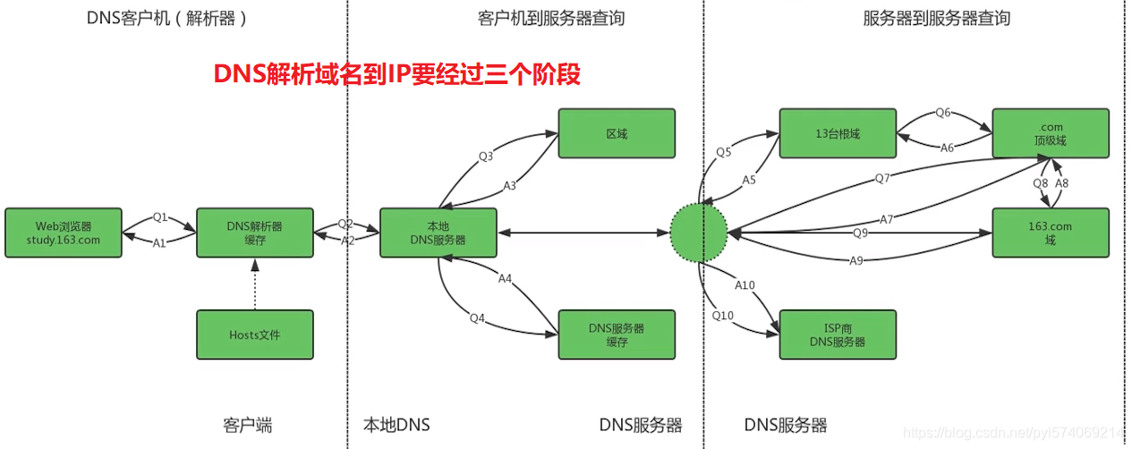 2.2、DNS解析域名到IP要经过三个阶段