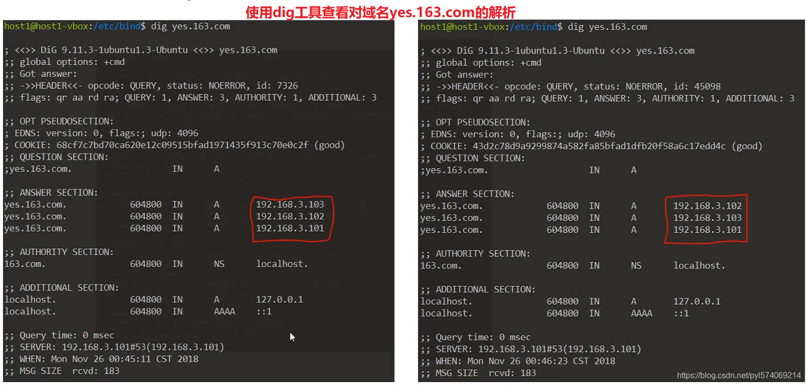 使用dig工具查看对域名yes.163.com的解析