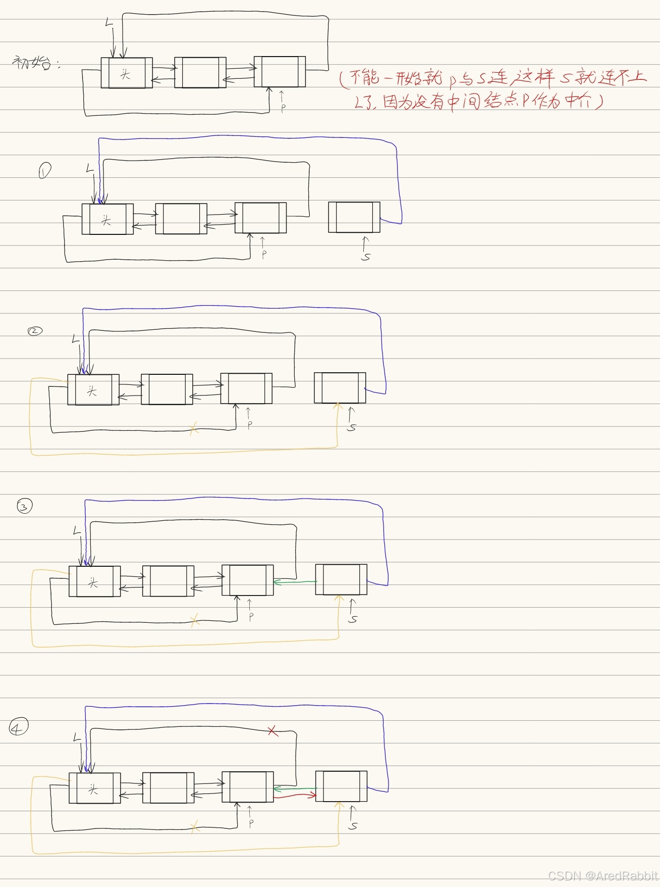 p->next->prior = s; // 将 p 的下一个节点的 prior 指针指向 s