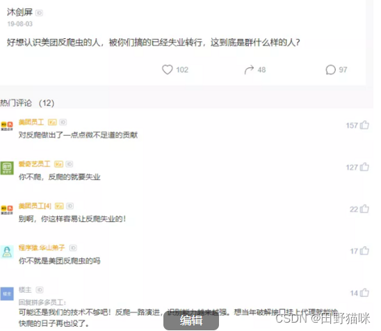 爬虫工程师和反爬虫工程师是一对相爱相杀的小伙伴,经常因为对方要加班写代码,甚至丢掉工作。比如下面这张图,大家用心感受一下:
