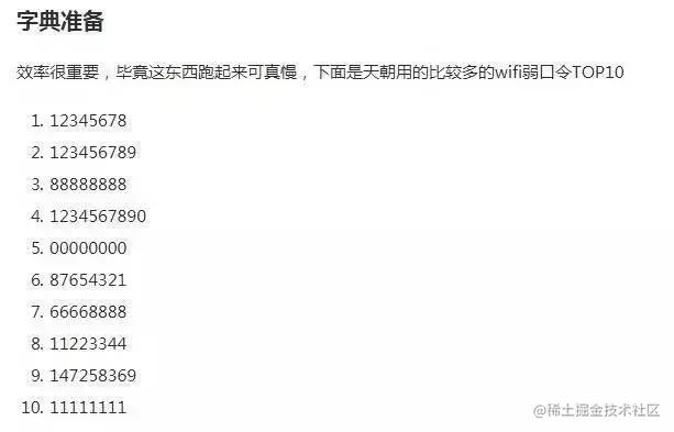 然后准备本次测试的11个弱口令,也就是预备的wifi密码,其实这个在网上有密码库的,只需要把文本复制到这个弱口令脚本里就行了。