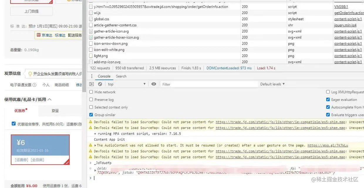 按下F12打开浏览器调试窗口,然后点击选择Console,在控制台中输入变量_JdTdudfp,即可从输出的Json中获取eid和fp。如上图