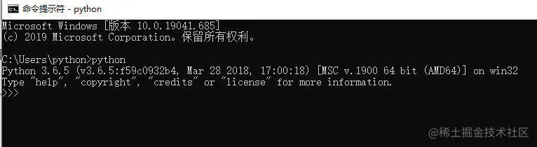 cmd 中输入Python 验证是否安装成功