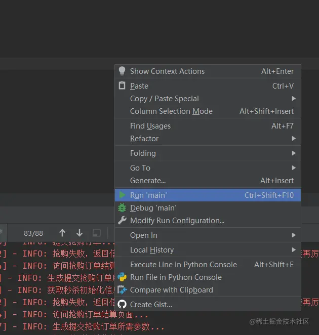 在pycharm 中,选择main.py ,右键选择run