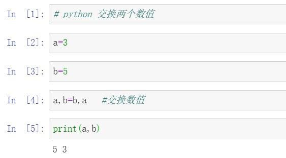 列表中交换两个数值,并不需要找个中间变量作为媒介,直接交换赋值即可,如下图所示: