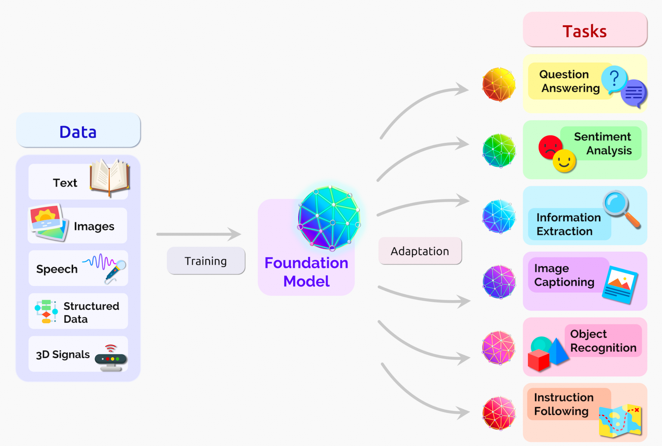 在2021年8月,李飞飞、Percy Liang以及其他一百多位学者共同发布了一篇名为《On the Opportunities and Risks of Foundation Models》的文章,其中引入了“基础模型”(Foundation Models)这一术语。文章中指出,这类基于自监督学习的模型在训练过程中展现出多方面的能力,这些能力不仅为各种下游应用提供了动力,也奠定了理论基础,因此将这类大模型称为“基础模型”。