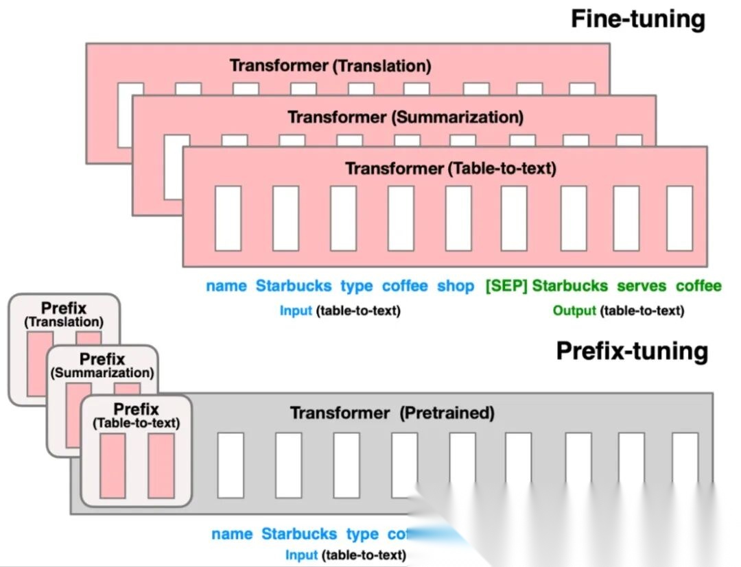 Prefix-Tuning 固定 PLM 的所有参数,只更新优化特定任务的 prefix。