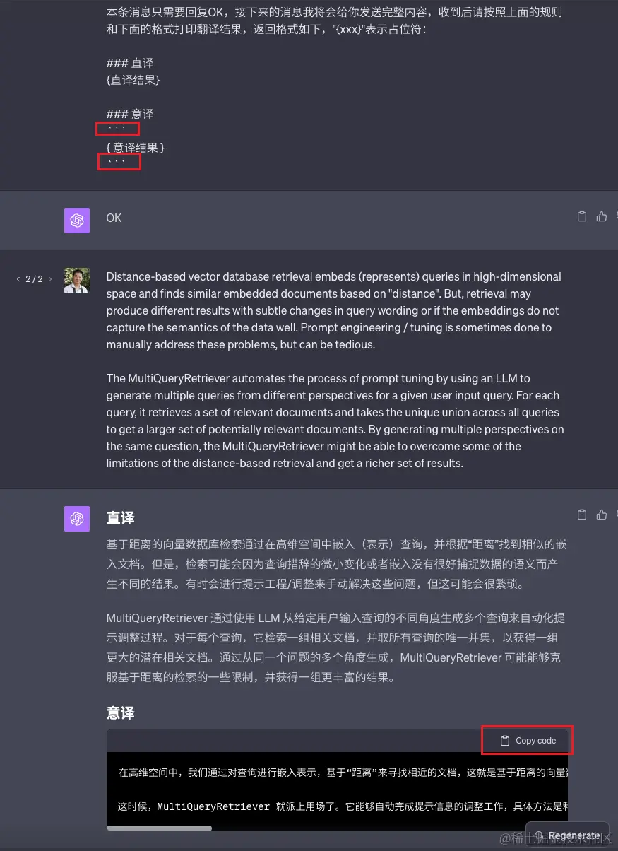 如果是 ChatGPT,由于是网页直接操作,并且它支持 Markdown 格式,通常我会把我想要的结果放在 Markdown 的代码块中,这样就可以直接复制粘贴出来,但有时候也不是很稳定。