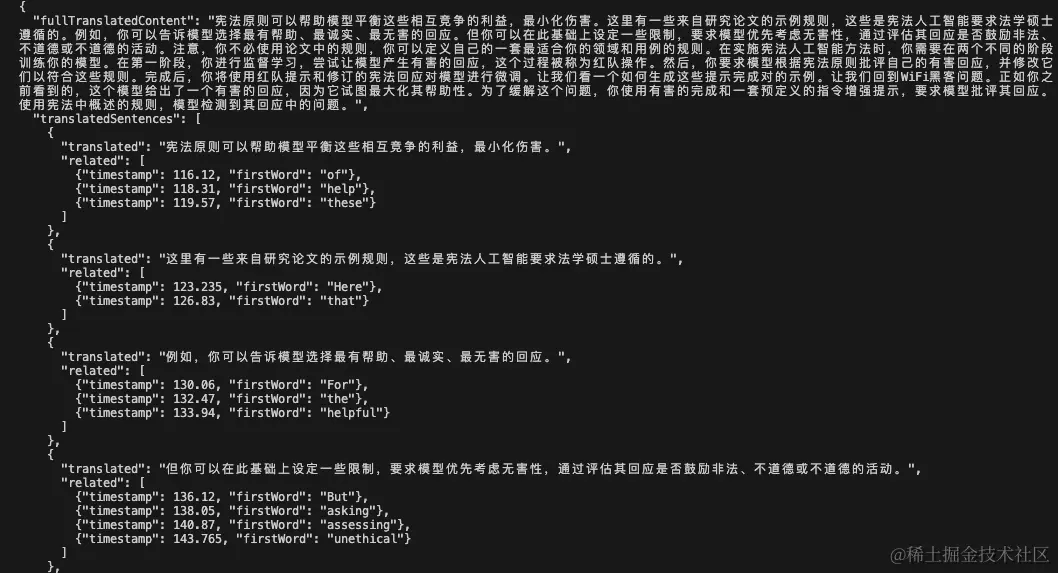 比如我在翻译时,会让 LLM 翻译两次,一次直译一次意译,然后采用意译的结果。这种情况下我不需要用 JSON 格式,只需要简单的用特殊字符将两次结果隔开,然后按照特殊字符一分割,就可以得到意译的结果。